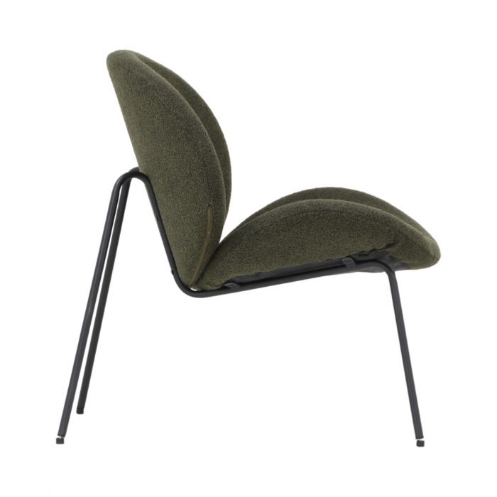 Kaunis, vihreää buklee kangasta oleva nojatuoli on uusi, yksittäiskappale!