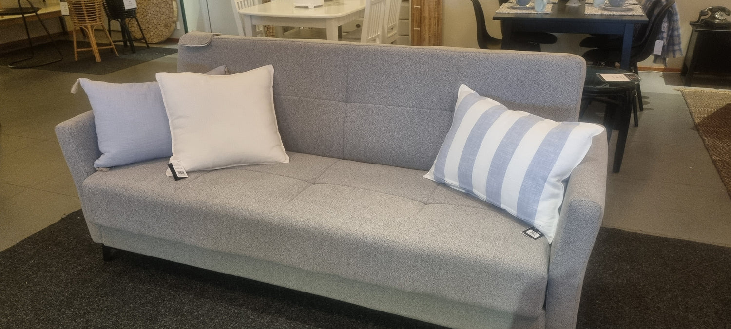 Kolmen istuttava vuodesohva harmaana